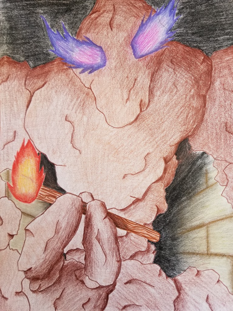 Here’s the newest illustration for “Cam and the Sleeping Island” that I mentioned in my last post. I call it: Landmark. This character is an entity uncovered by Cam and Captain Finn about halfway through the story. A being of stone, a golem, whose origins are a mystery. Is it friend? Foe? Protector? Destroyer? You’ll have to read to find out.