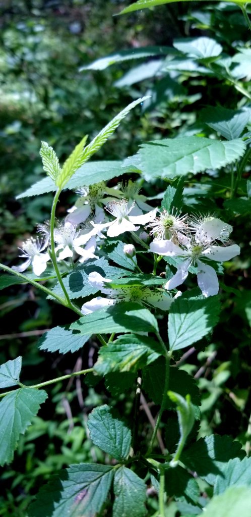 The blackberry bushes are in bloom;
